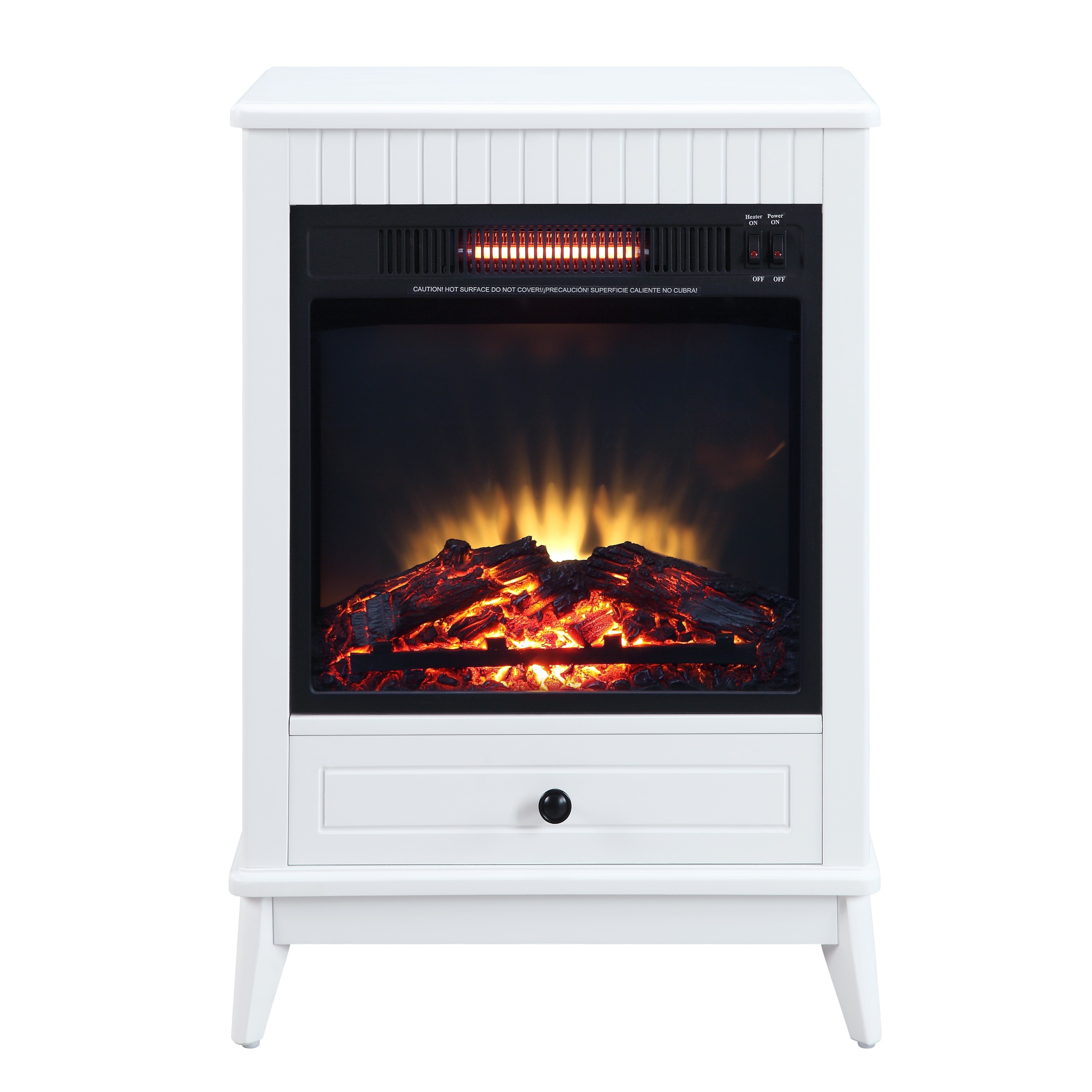 RomanceIntroduce the cozy and welcoming ambiance of a fireplace in any room with this electric fireplace table. Its compact footprint is perfect for an apartment or even your home office or bedroom. The table boasts charming details in grooved trim and tapering, fin-style legs. One drawer under the fireplace adds storage to help keep your space tidy.Product Details•KD•Top Thickness: 1"•Metal Side Drawer Glide•Full Extension•Power Voltage: 120V-60Hz, 1500 Watts
