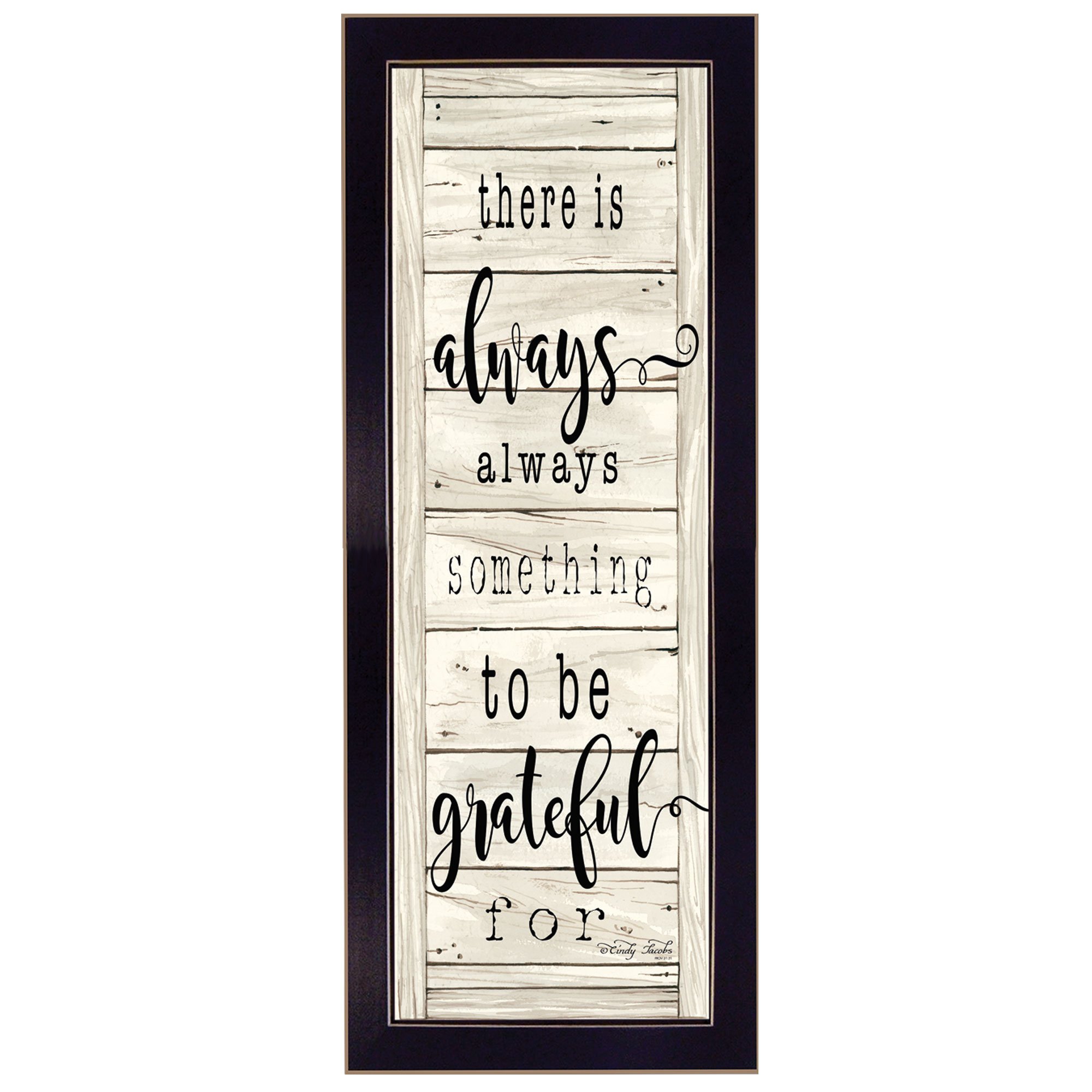 Be Grateful- 10x26 framed print in a decorative black frame by artisan Cindy Jacobs•Women Owned (WBE)•Textured Artwork with a 'rolled on' acid free acrylic coating to create a canvas painting effect. No glass is necessary.•UV protectant coating protects artwork from fading.•Arrives Ready to Hang