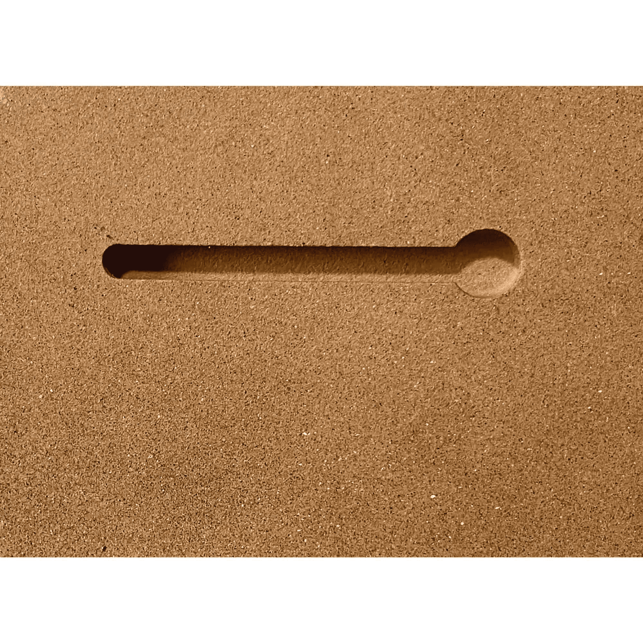 Made of MDF wood; hanging slot in back.