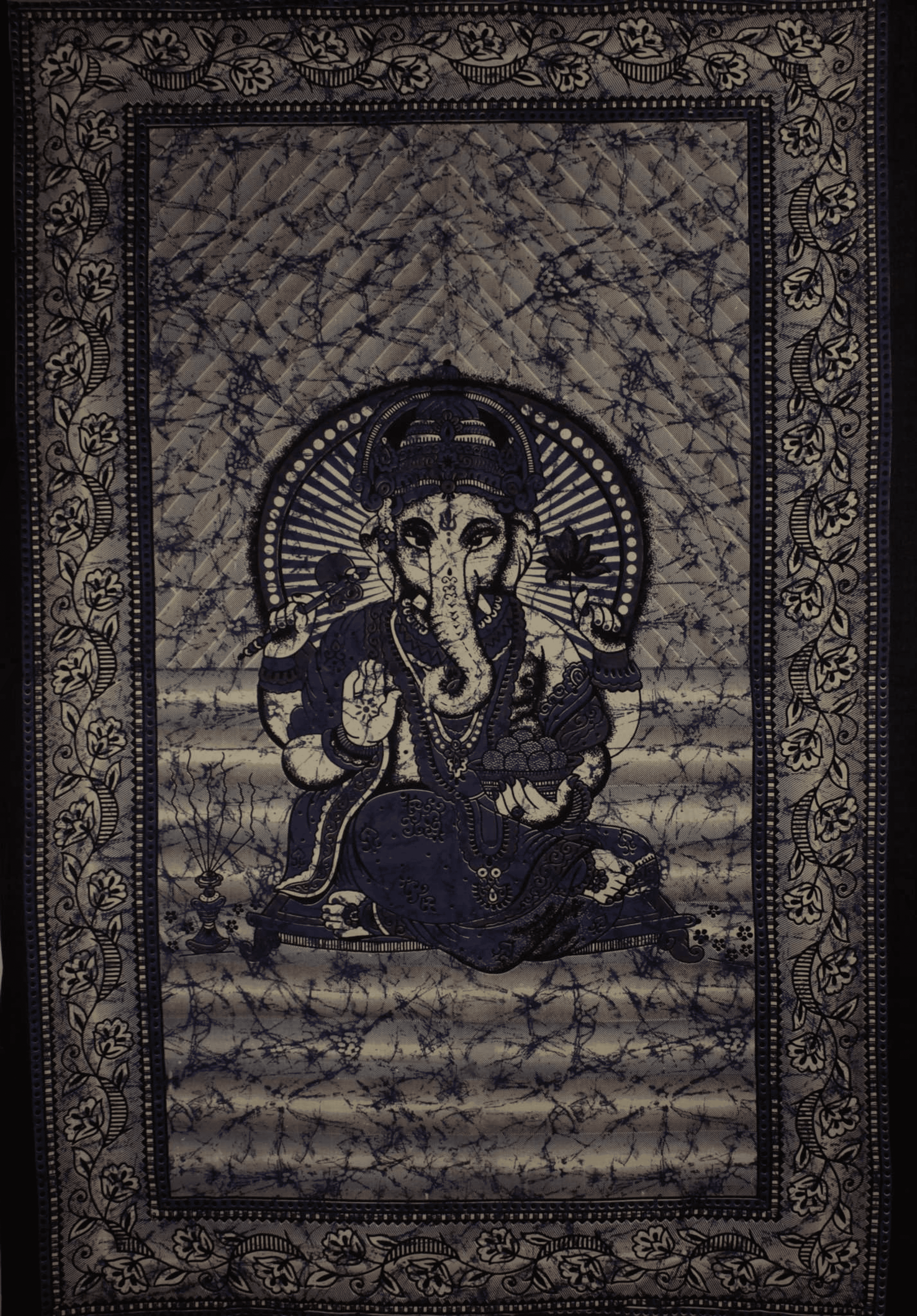 Bold beautiful batik style, tie-dye color tapestries in double size! Ganesha is revered as the remover of obstacles and symbolizes good luck, every moment is a chance to a new beginning. Ganesha also symbolizes prosperity, success, and peace. The mantra, Om Shri Ganeshaya Namaha is chanted as a salutation to Ganesha.