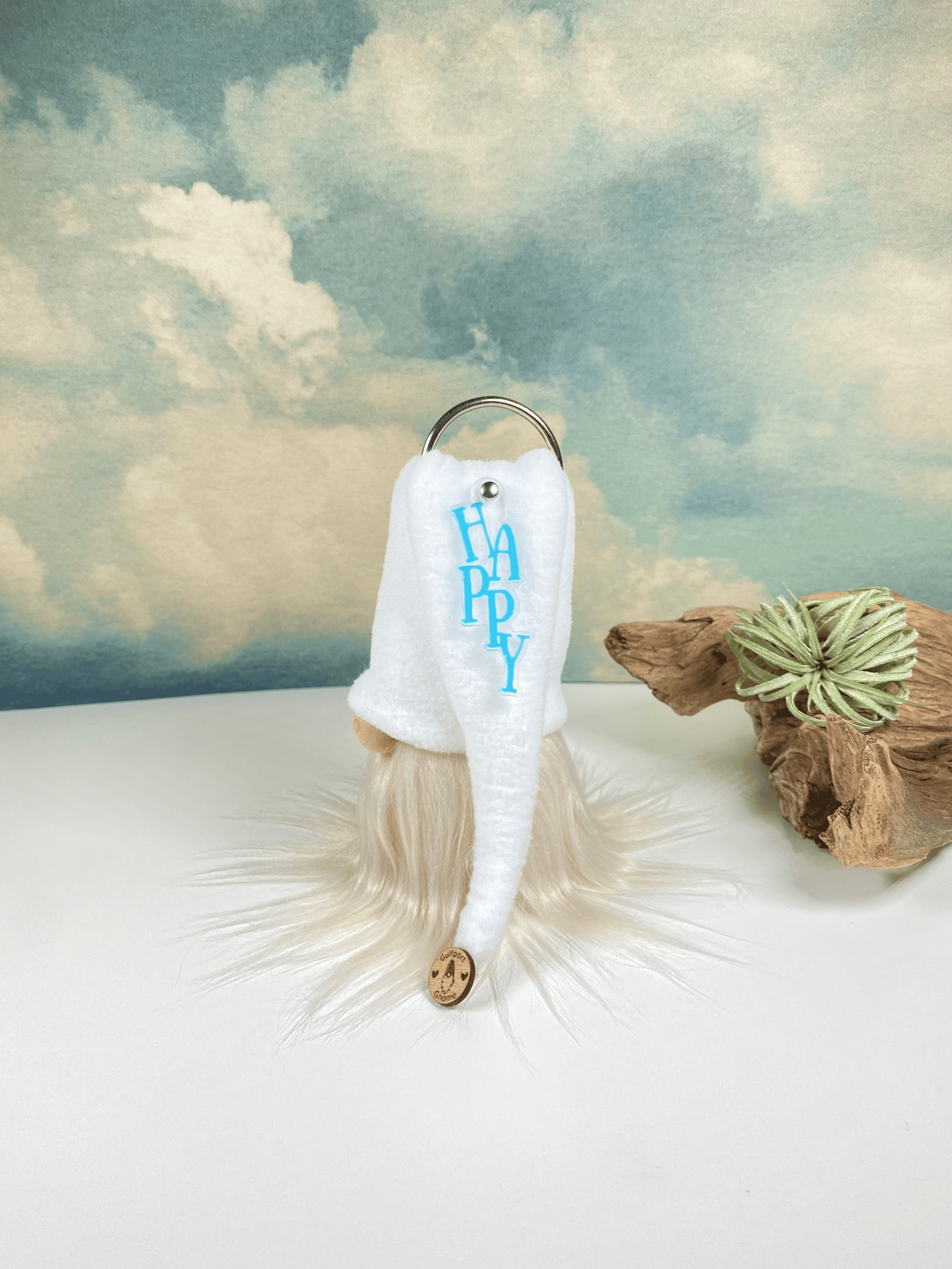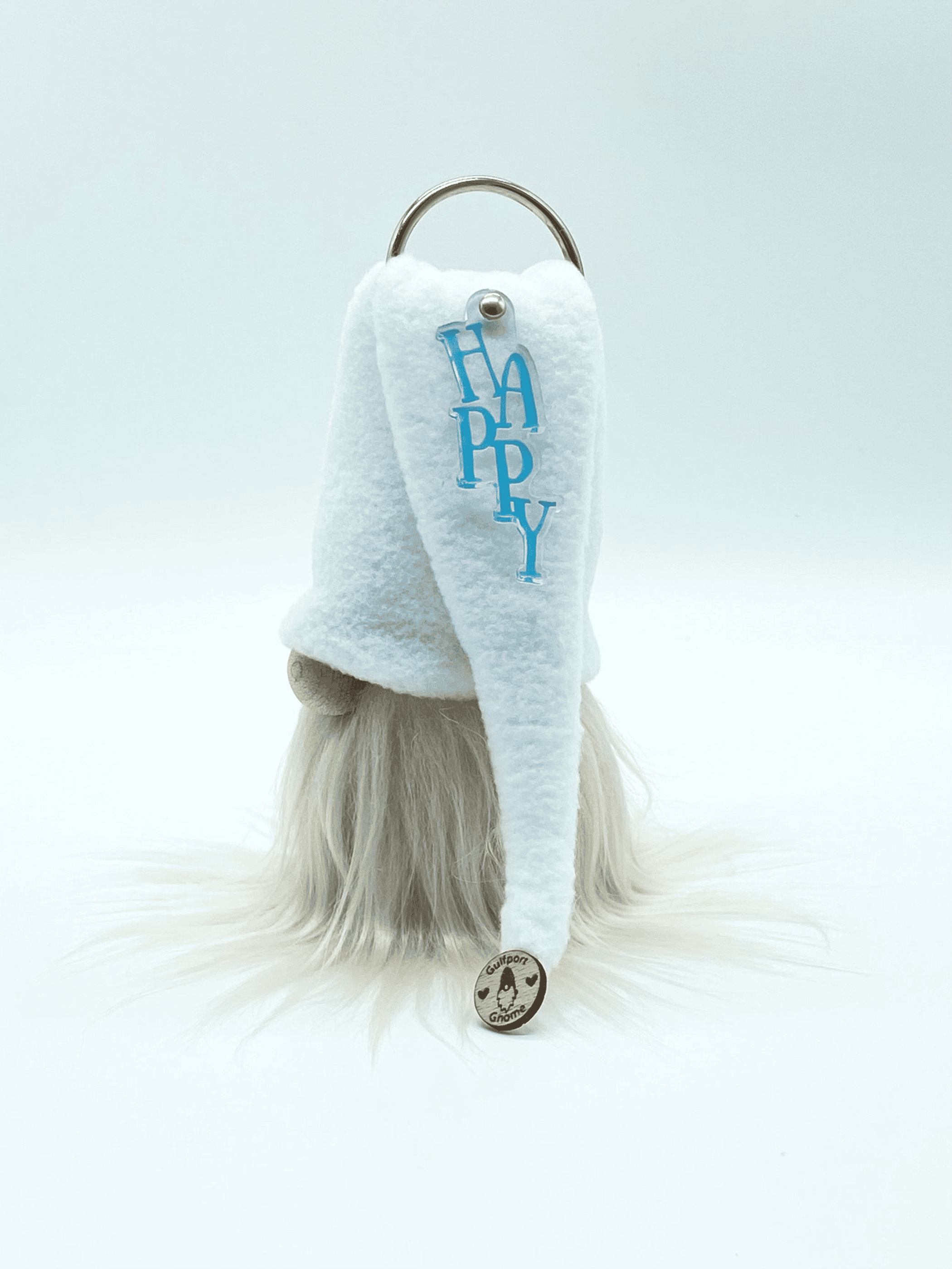 This Special Edition gnome features a fleece hat with a HAPPY charm! This gnome was designed to celebrate the one year anniversary of the Gulfport Gnome!