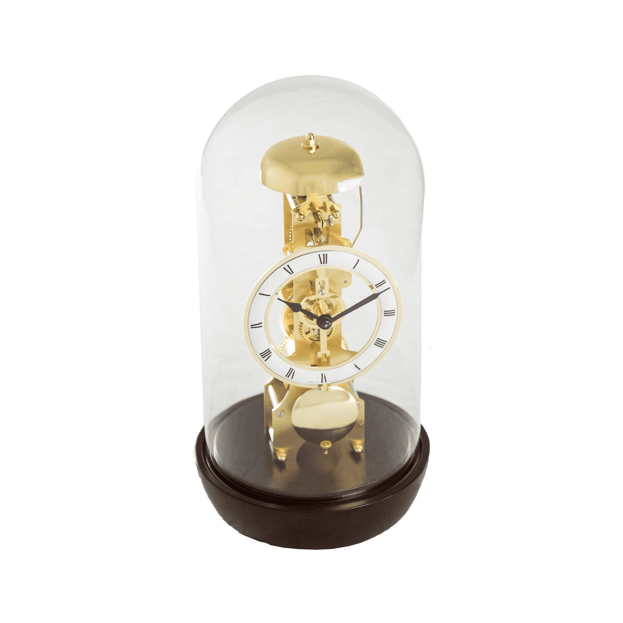 A time capsule that actually keeps time. This unique mantel clock features a glass dome, giving you a 360? view of the passing bell strike movement.